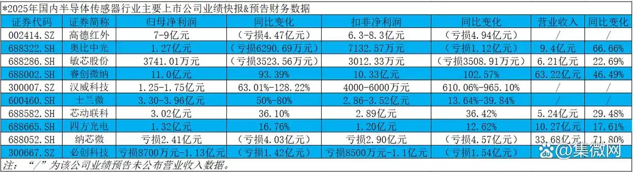 随着下游人工智能、汽车电子、新能源及人形机器人等新兴领域需求的爆发式增长,中国半导体传感器行业在2025年迎来了结构性发展的新周期。截至2月28日,基于各上市公司发布的2025年业绩快报及预告,行业内企业盈利表现呈现显著的“冰火两重天”格局。本文通过对比核心企业的净利润增长及业绩变动动因,结合2026年最新的技术趋势,深度剖析行业发展格局、机遇与挑战。