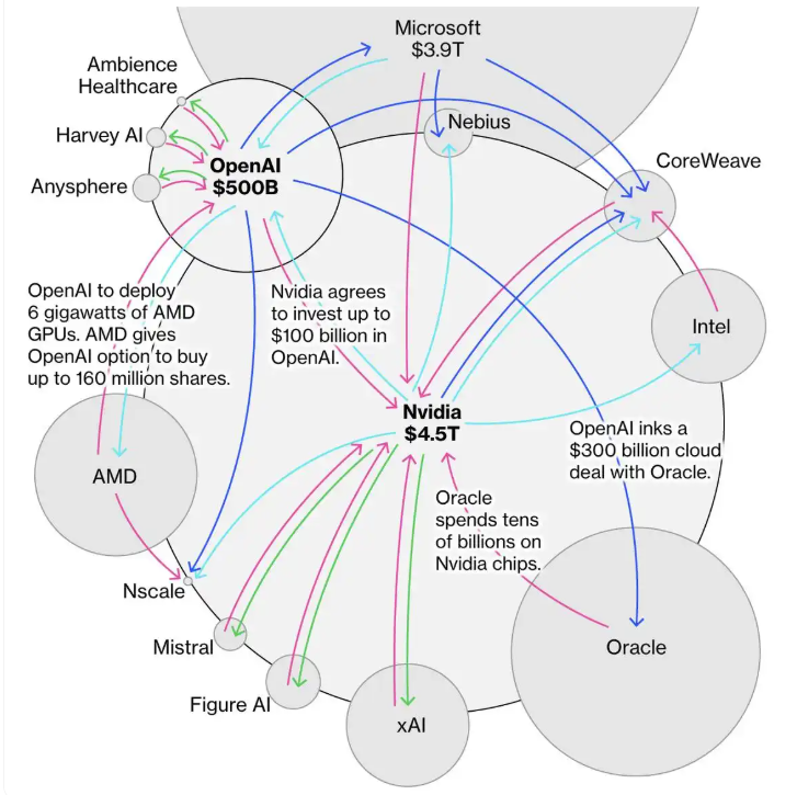 AI芯片已经成为中美科技竞争中的重要“王牌”。过去半个多月,高达4.5万亿美元市值的英伟达宣布,未来十年将向OpenAI投资至多1000亿美元,后者将购买和部署400万-500万块英伟达GPU芯片;同时,10月7日,AMD宣布与OpenAI达成了一项为期四年、价值数百亿美元的算力芯片供应协议,OpenAI将认购AMD最高10%的股份;甲骨文也和OpenAI达成万亿美元的合作协议。AMD和OpenAI双方合作公布后,AMD股价一度暴涨,创下近十年来的最大涨幅,也让这家数据中心AI芯片市场的“千年老二”,首次与英伟达展开正面对战,并且让OpenAI形成了一场万亿“循环交易”。