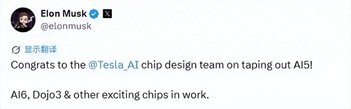 三星台积电代工,马斯克官宣AI5成功流片